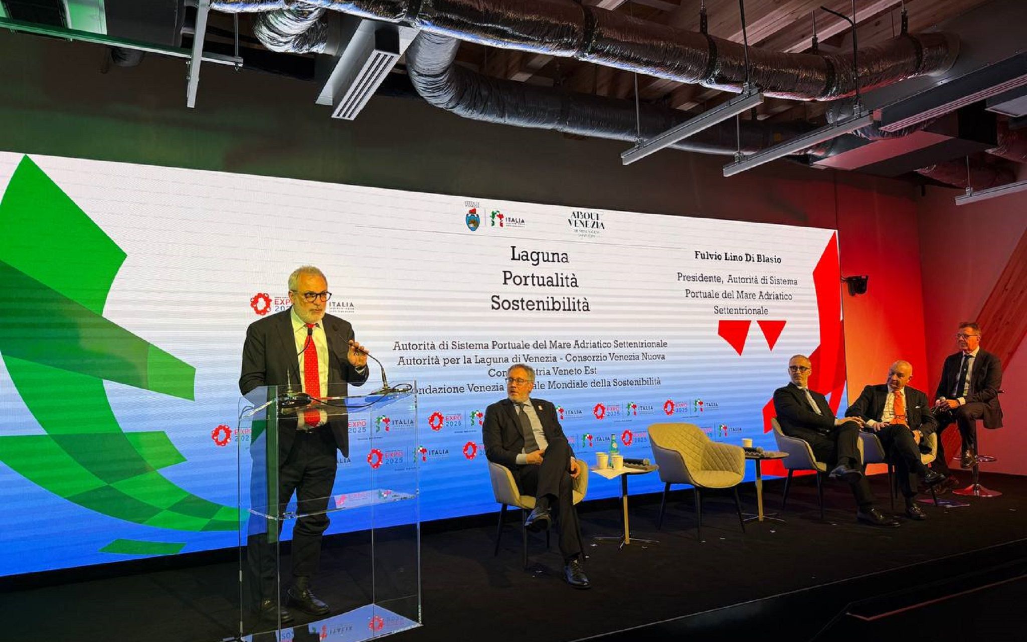 At the center of the discussion, the themes of sustainable development of the port and lagoon system, ecological transition, environmental protection. Speeches by: Fulvio Lino Di Blasio (President of the Port System Authority of the Northern Adriatic Sea), Giovanni Zarotti (Authority for the Venice Lagoon - Consorzio Venezia Nuova), Mirco Viotto (Vice President of Confindustria Veneto Est), Alessandro Costa (General Director of the Venice Foundation, World Capital of Sustainability)